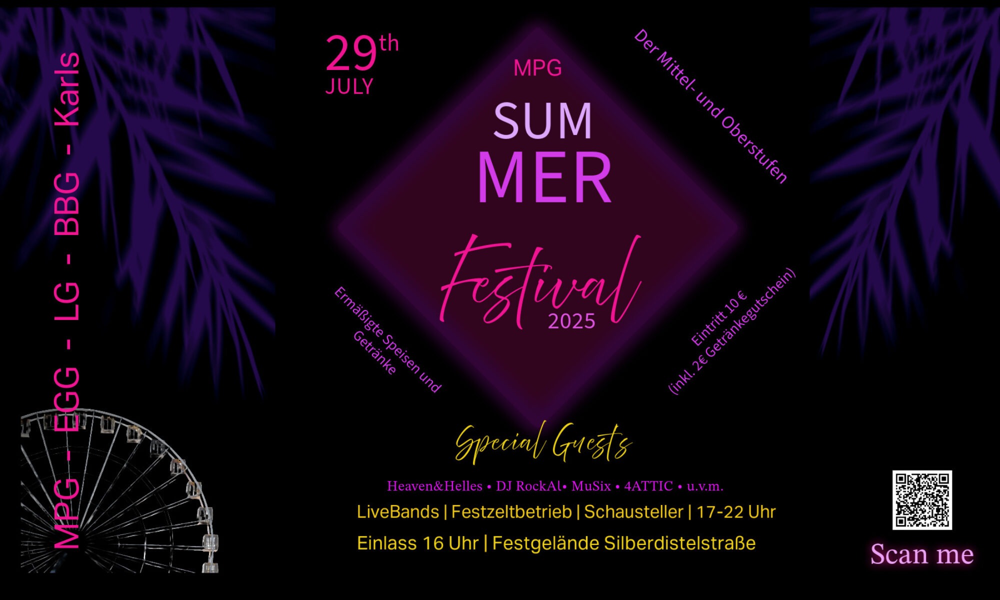 Tickets jetzt auch auf dem MPG Sommerfest am 28.07.25 und an der Abendkasse am 29.07.25 erhältlich.